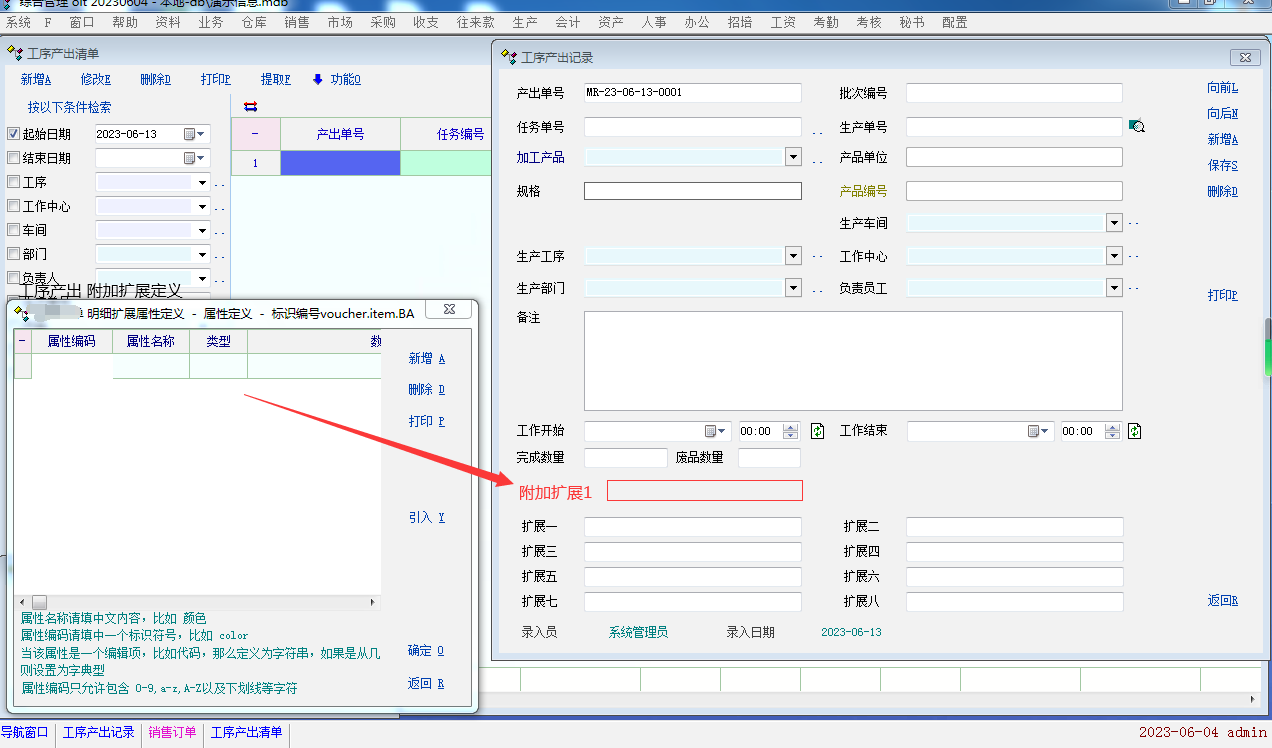 系统已有8个基本扩展属性定义,为采集生产过程中更多信息,希望老师增加附加扩展属性定义;