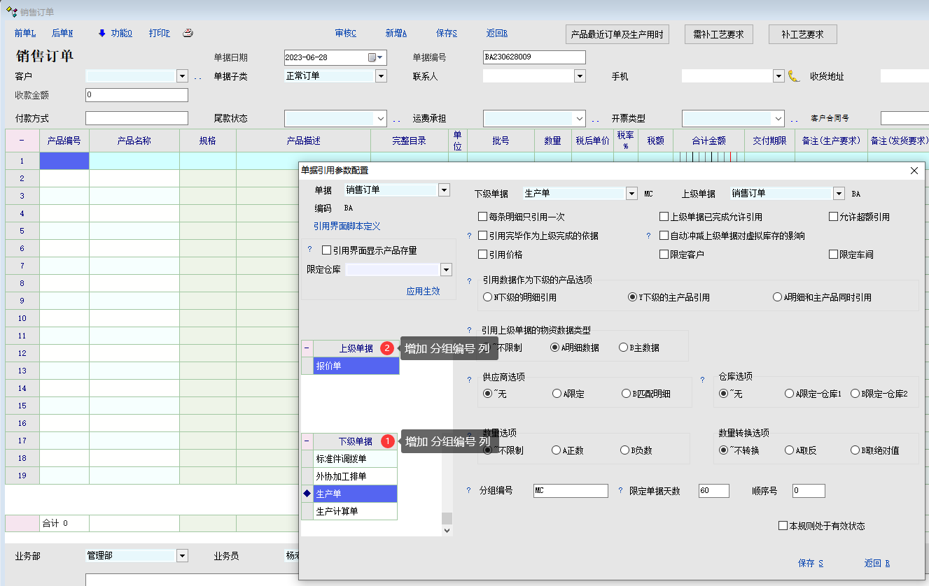 建议 单据引用界面的设置, 增加分组编号. 方便查看哪些单据为同一个分组_产供销