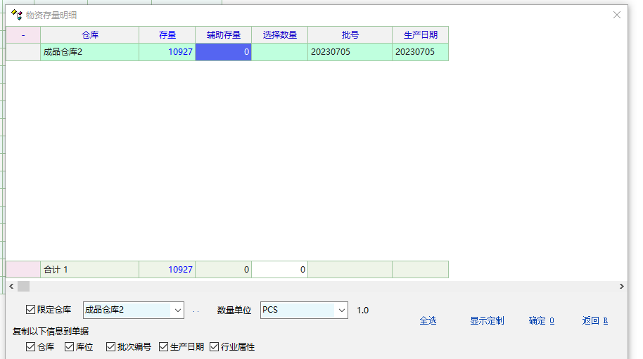 讨论_单据 选择批次界面,限制仓库 全选择时,把没显也一起选中。批量选中时能不能 忽略行_产供销