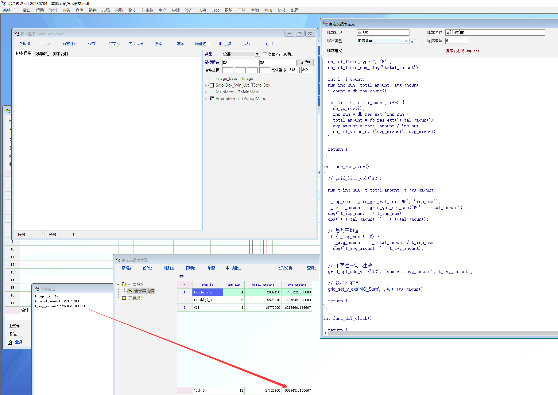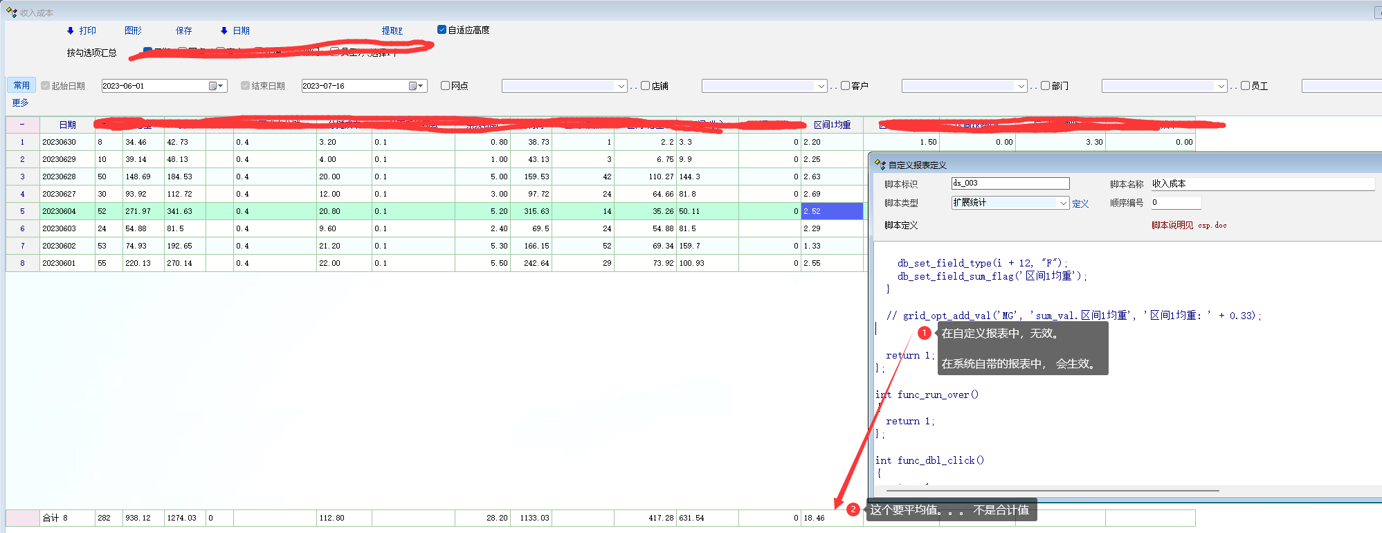 场景:自定义报表中, 合计区域里, 有时候需要展现的不是合计值, 而是平均值,或者某种算法计算过之后的值 使用 grid_opt_add_val(mg,'sum_val.ext_3', a_ml); 这种写法不生效. 如图: |