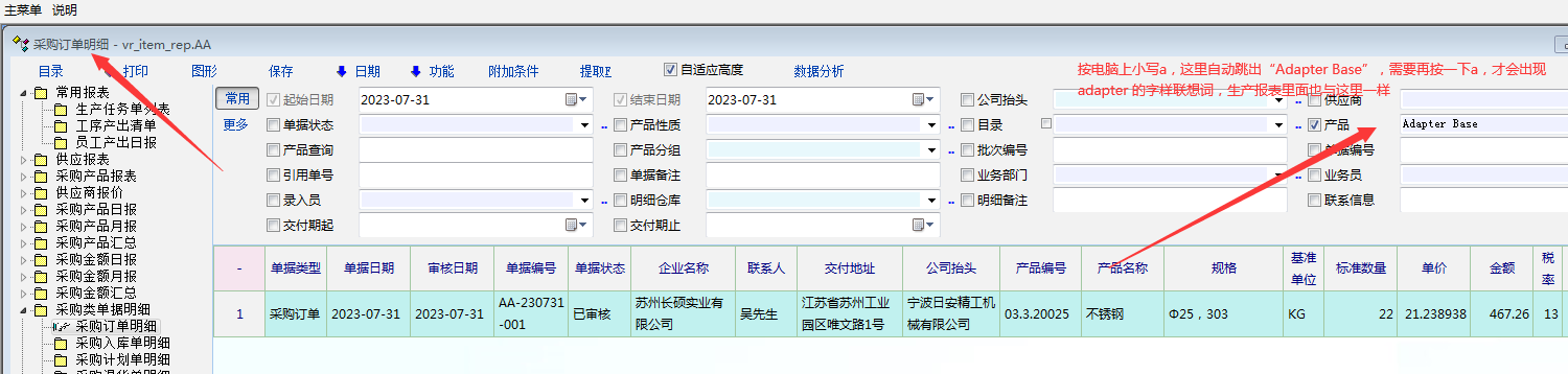 原创_采购报表, 生产报表里面检索,输入产品(多选栏目),联想出现的 产品有问题_产供销