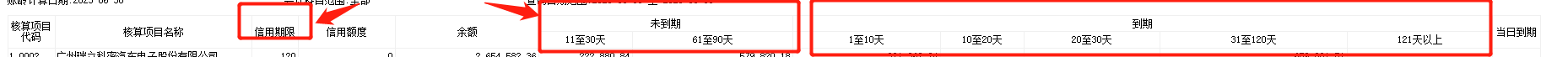 客户应收款 分未到信用期和已到信用期 两种不同的账龄 统计格式。如果能同时结束日期时的期末预收款就好了,因为很多客户要把预收款减去应收款才是最后应收账款。