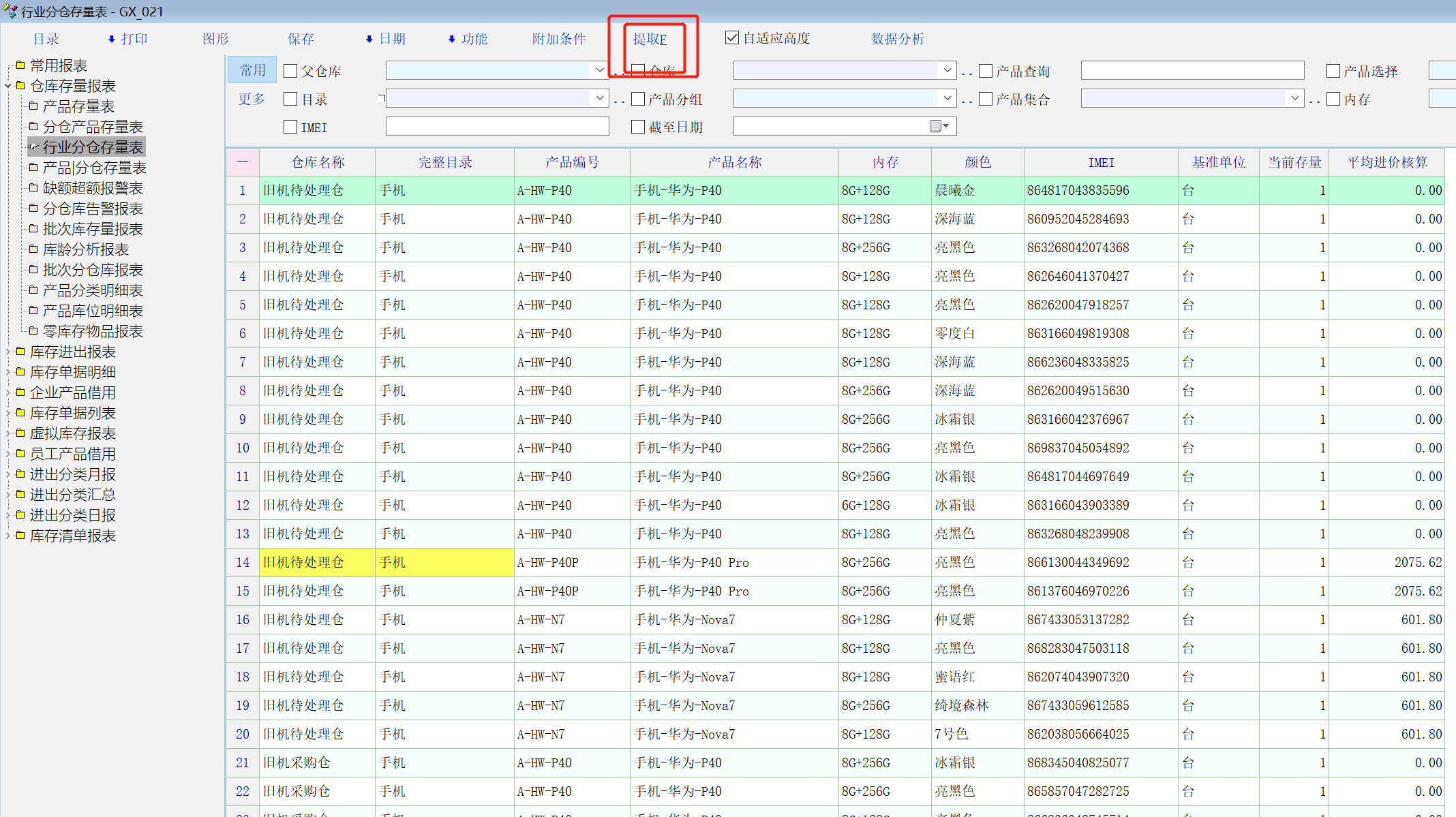 以下我我抓取【仓库存量报表】 → 【行业分仓存量表】的SQL读取记录