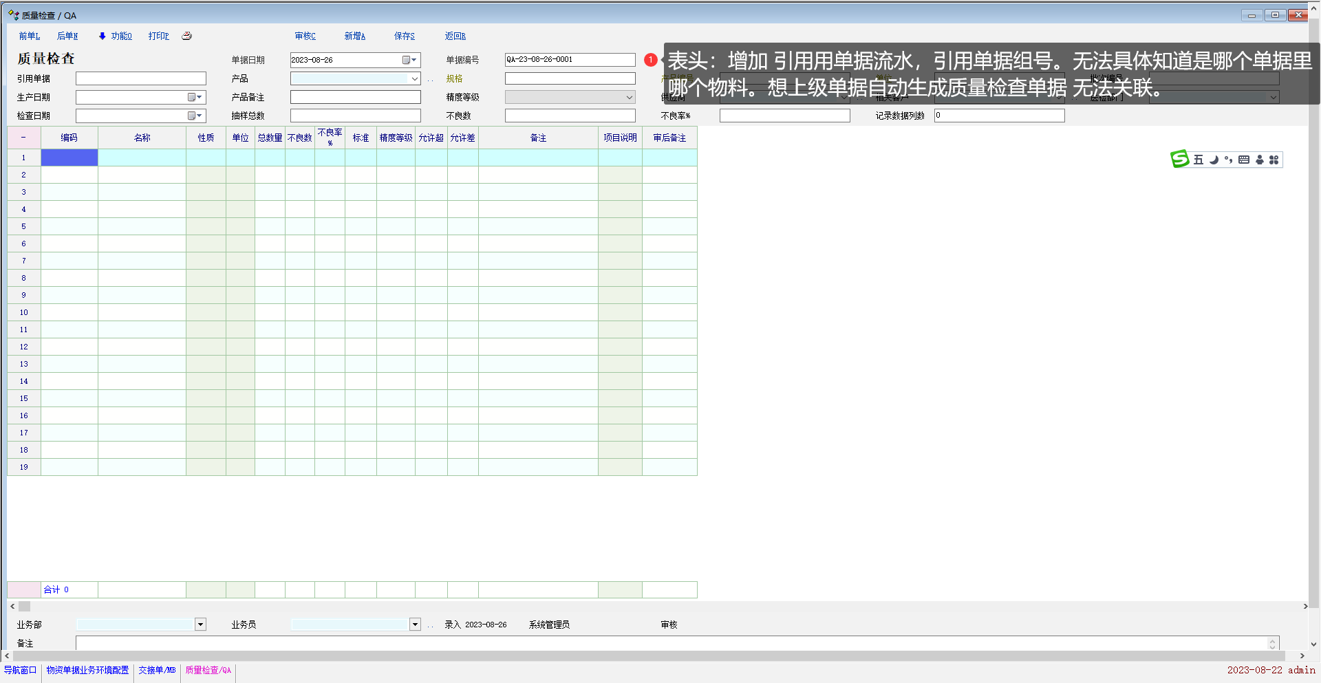 质检类单据已经扩展到4个,可以到业务环境企业。