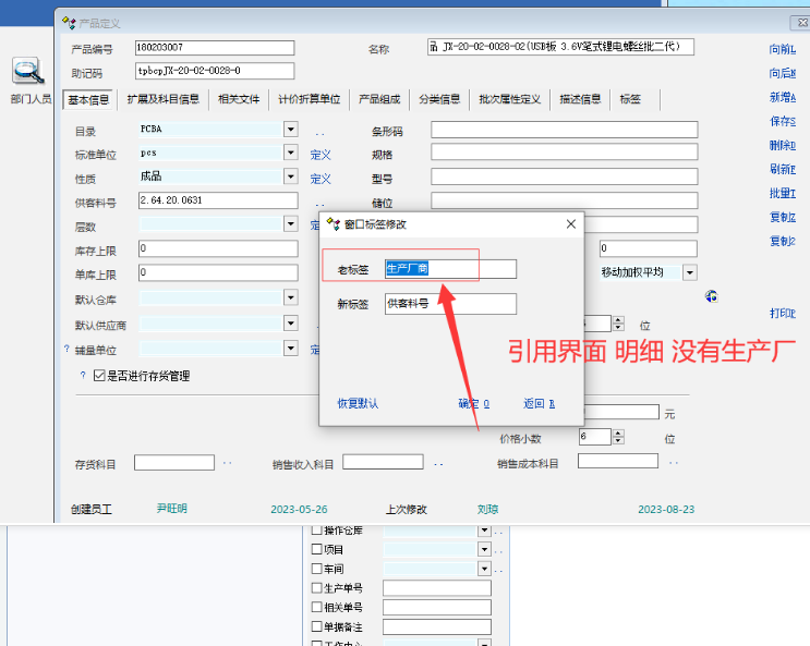 原创_产品资料里面有生产厂商,但单据引用界面明细里面没有生产厂商_产供销