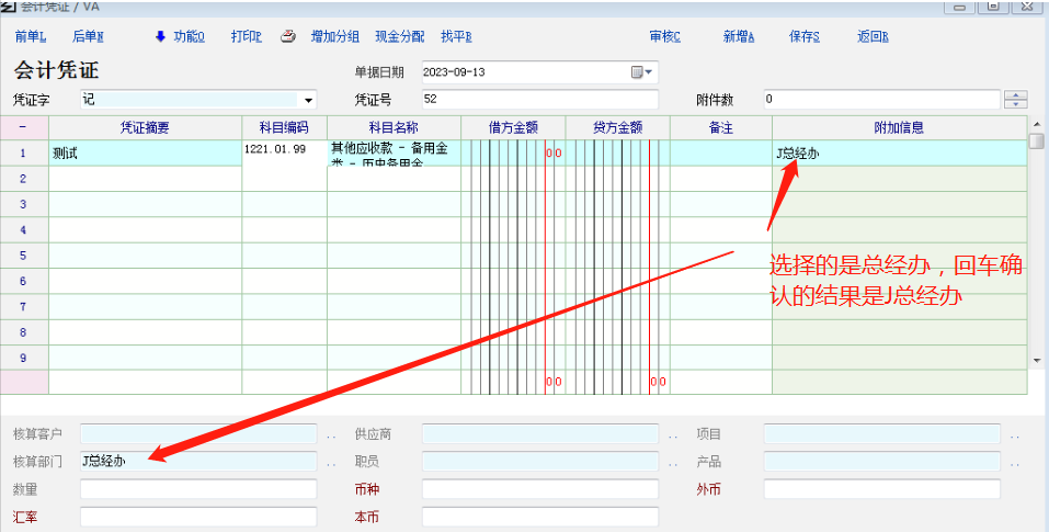 我在科目里输入汉字备用金进行模糊查找科目,在科目选择界面用光标选择的是备用金科目然后回车确认,但是在会计凭证里体现的就是备用金科目下面的历史备用金科目,部门选择也会出现这样的情况