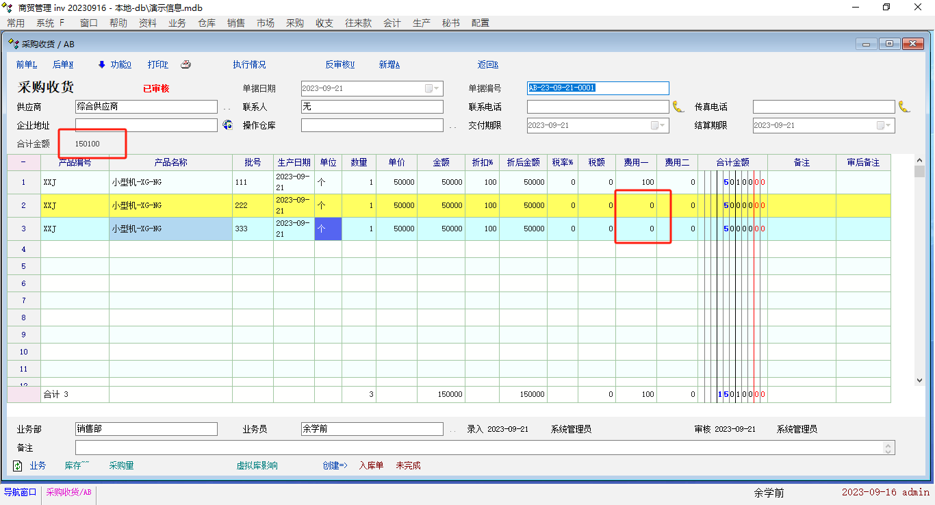 目前的解决办法:在 采购订单和采购收货 单据中的 单据明细列表,把费用一、费用二 显示在单据明细中,采购收货输入多个批号(输入多行时),把其余行数的 费用一、费用二 删除掉