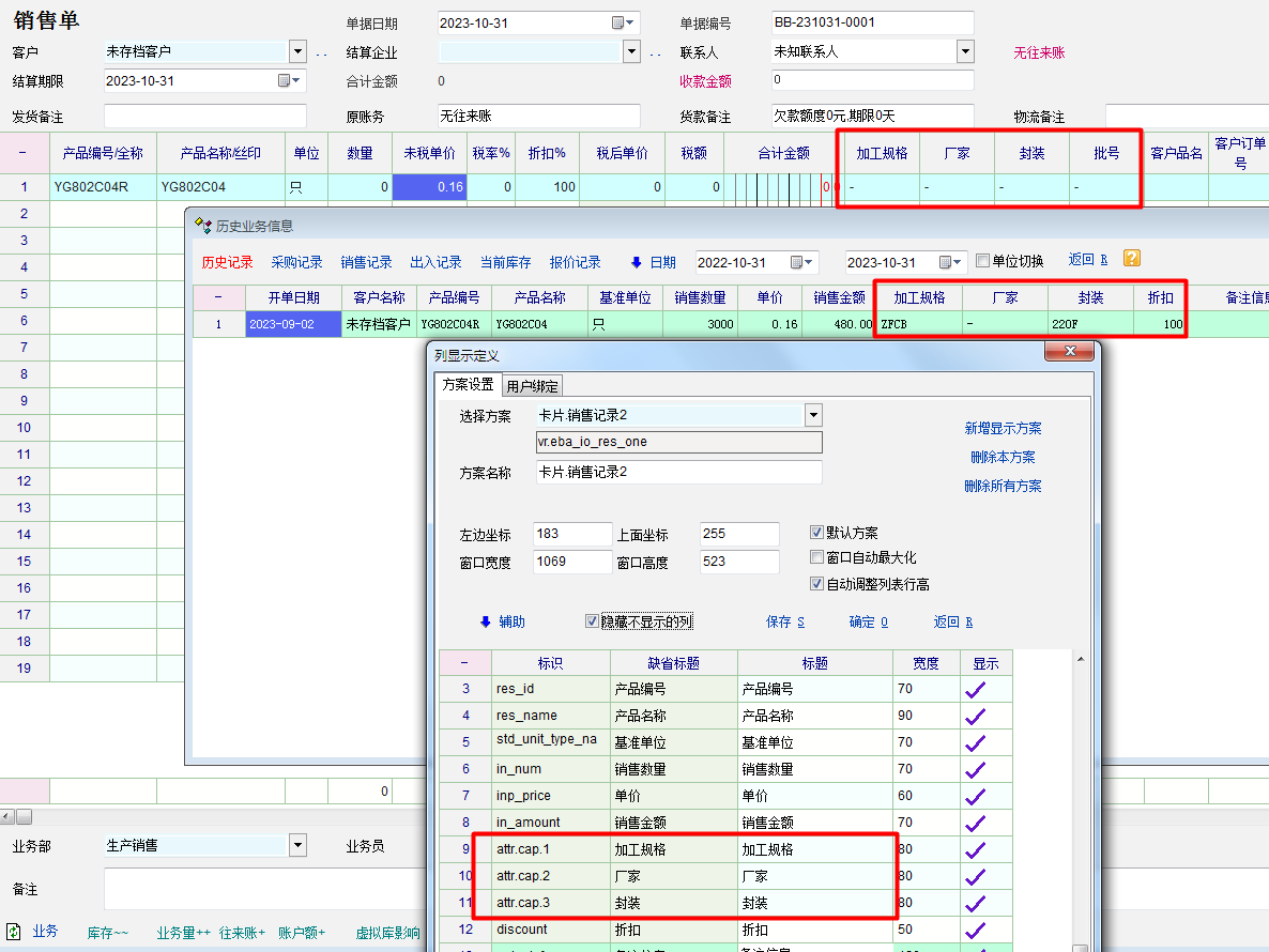 而当输入产品型号只查询当前产品历史记录时并选择输入时,系统并不会带入记录中的产品行业属性内容。只带入了当前产品价格信息。