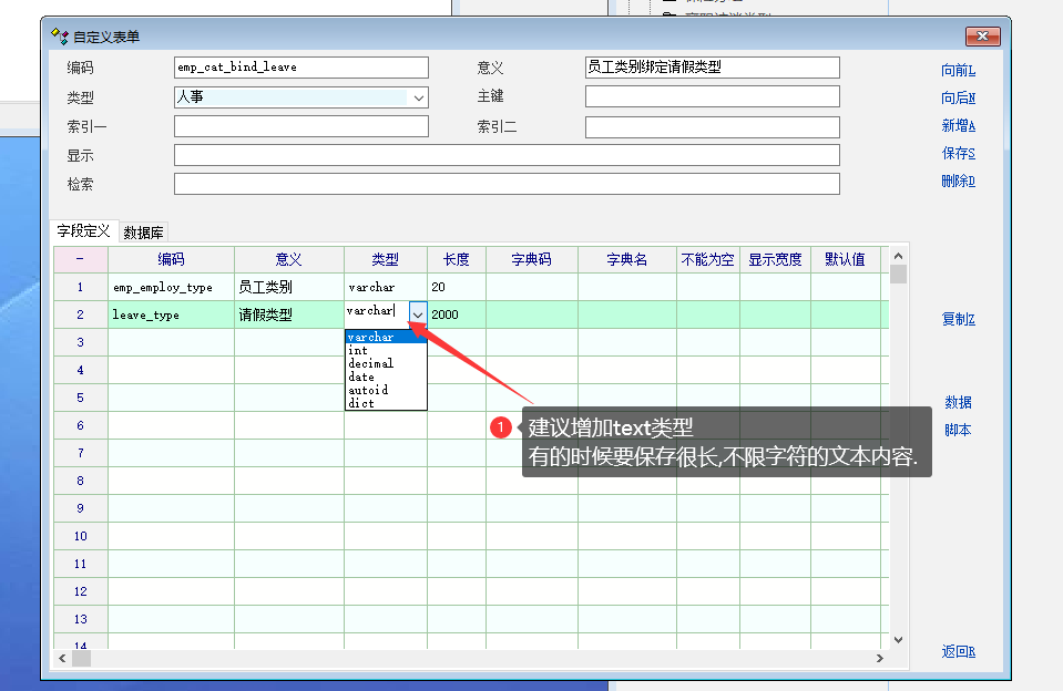 场景: 自定义增加了一个表单, 需要text类型, 记录从订单到出货中间的一些详细过程 或数据, 需要很长的文本. 目前最长设置了4000. 暂时是够用, 但是希望能增加text 类型, 不限制文本长度的. |
