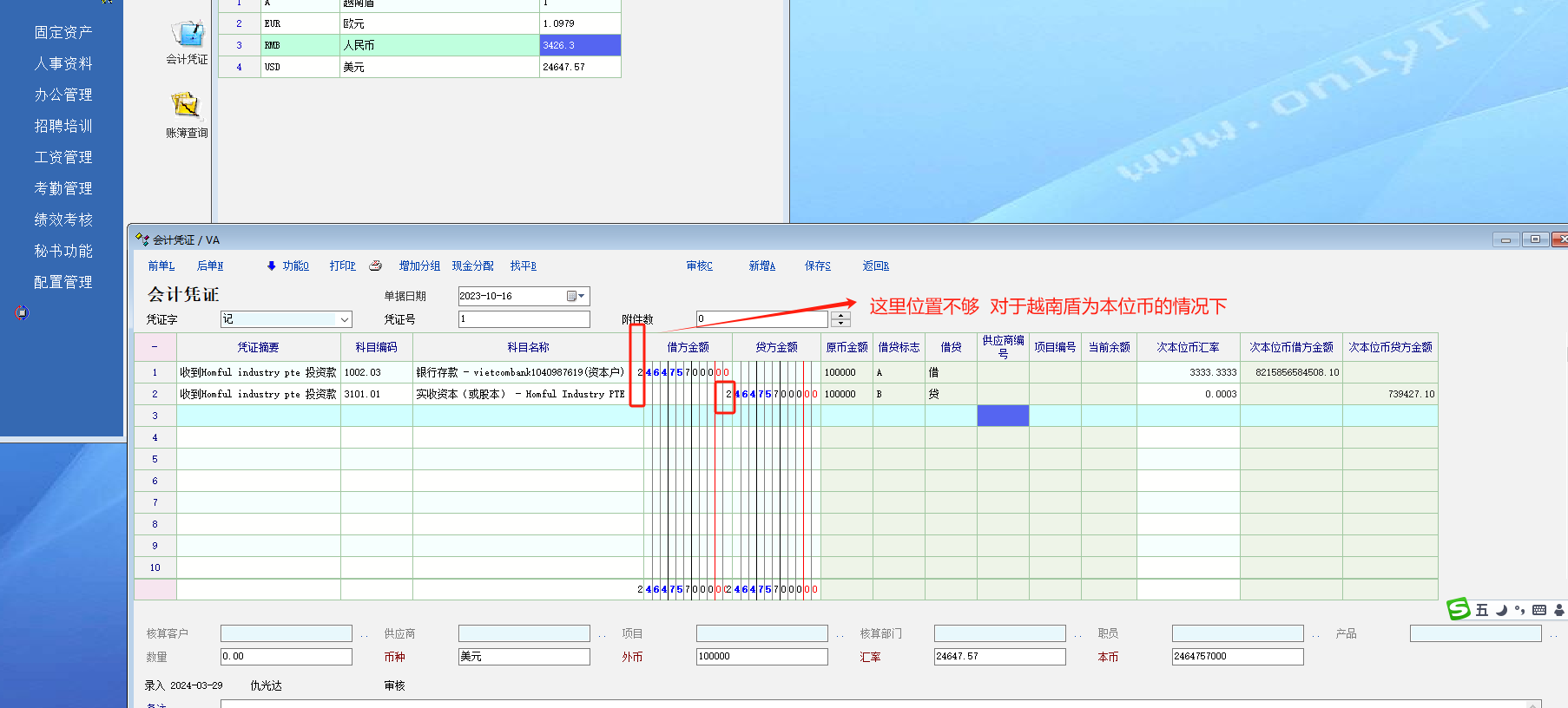 越南盾为本位币时,金额那位数不够