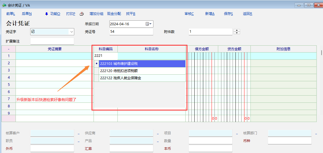 推荐_升级最新版本后会计科目输入时模糊查询不正常_产供销