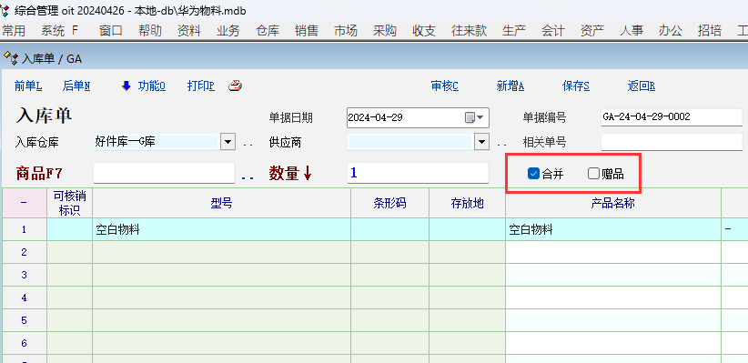 业务单据中--扫描快速输入打开后  合并  赠送  勾选问题