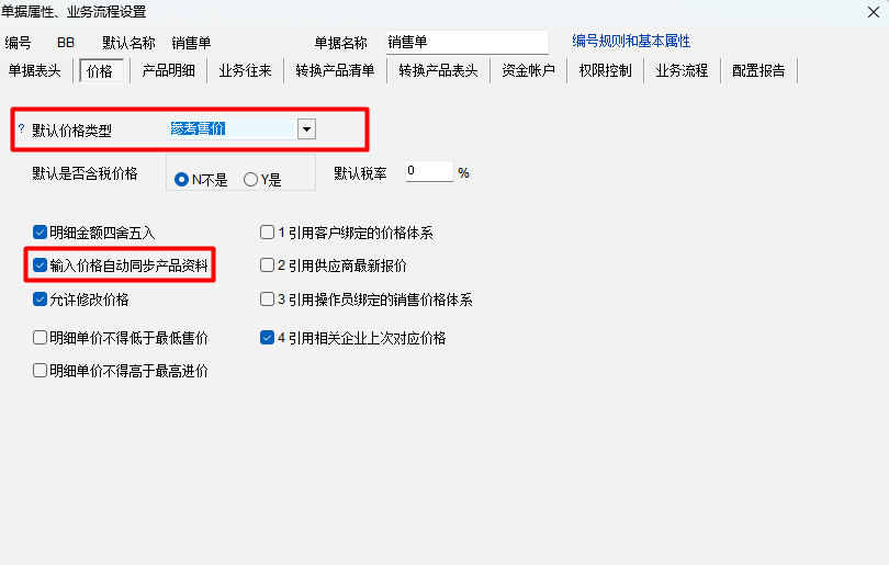 参考售价好像是可以随着物资单据业务设定自动改变的。