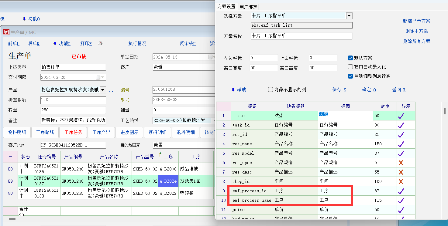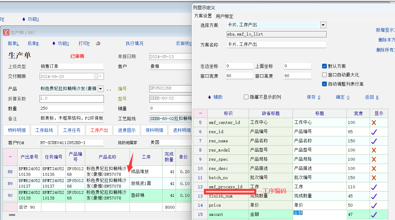 希望老师在生产单工序产出、工序产出清单显示定制与工序任务一样增加工序编码显示便于以编码来精准查找到工序!