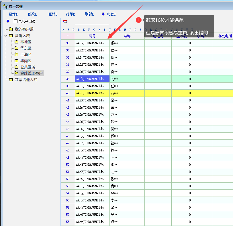 另一个是截取16位长度, 但是会丢失了一部分新增的客户, 有判断, 如果有客户就不用新增了.