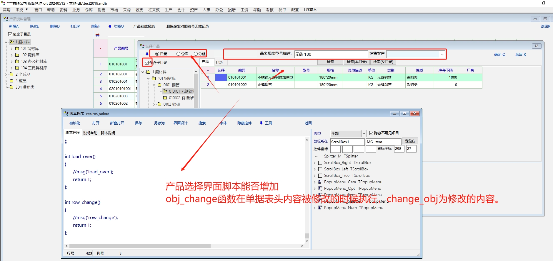 讨论_产品选择界面脚本 能否增加 控件触发函数。_产供销