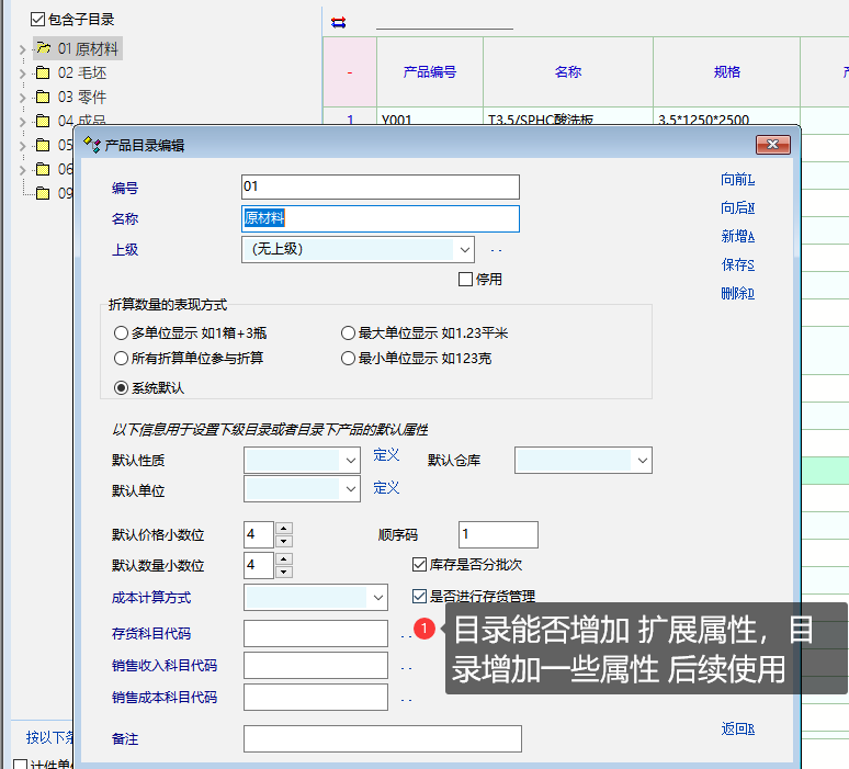 产品目录能否增扩展属性,后续会使用到目录相关扩展属性。