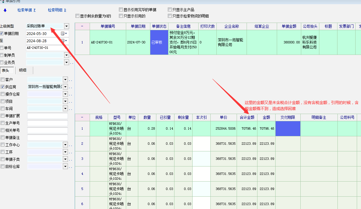 单据引用的时候---在单据列表里面的含税金额显示出来----目前显示的是未税金额合计与实际单据里面显示不一致,造成选择困难