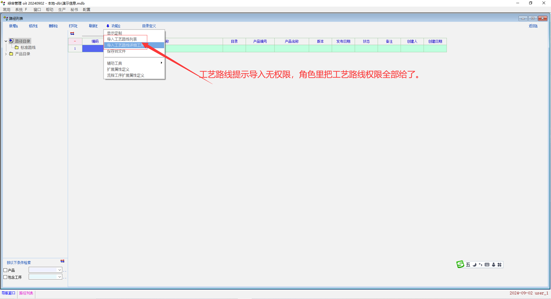 工艺路线提示无权限,但是工艺路线全部权限已给。