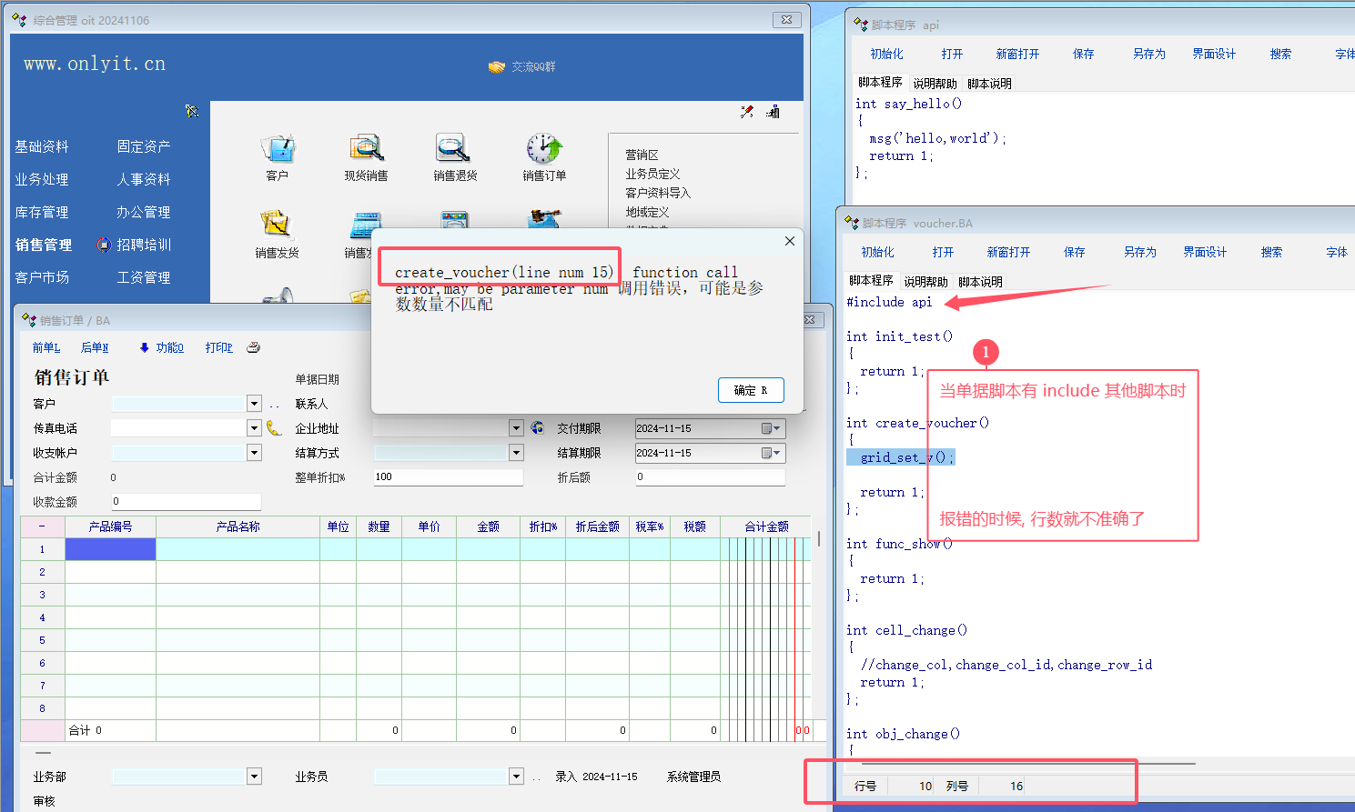 业务单据有include时, 写脚本时, 偶尔一个函数参数少写了, 保存后, 发现报错行数定位不准确.