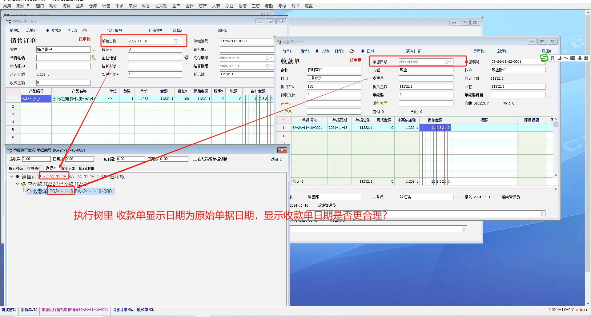 执行树里 收款单显示日期为 原始单据日期,显示收款单是否更合理?