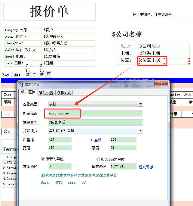 你把对象类型设置为计算值,然后表达式为 pub_para_get('corp_fax_no')