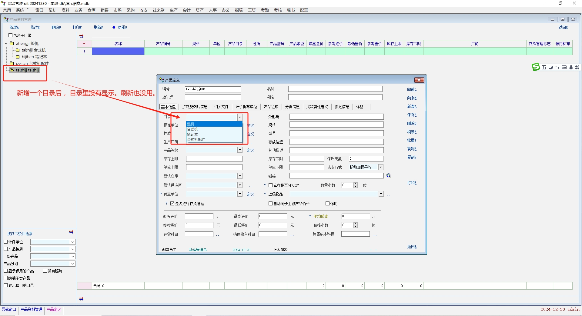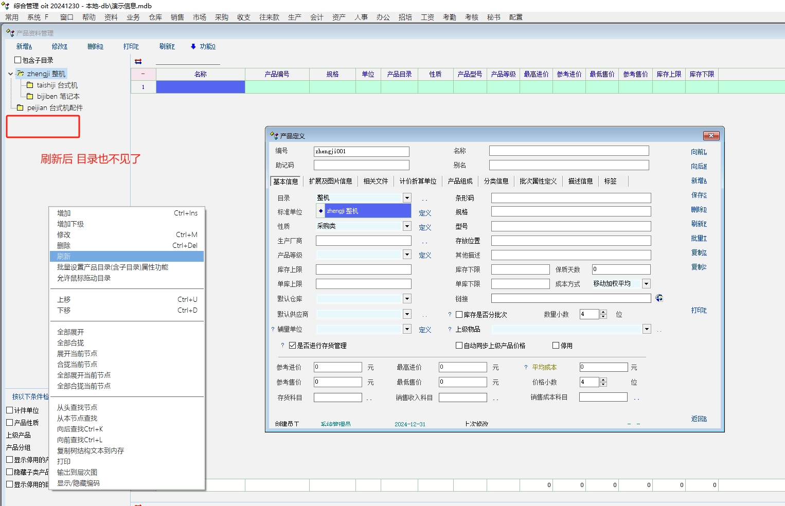 求助_最新版 目录新增后 不显示,必须要重新登陆。_产供销