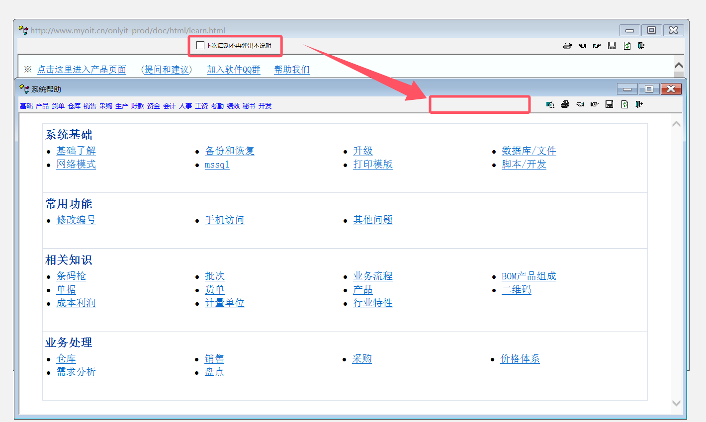 原创_希望系统帮助增设“下次启动不再弹出本说明”按钮,谢谢!_产供销
