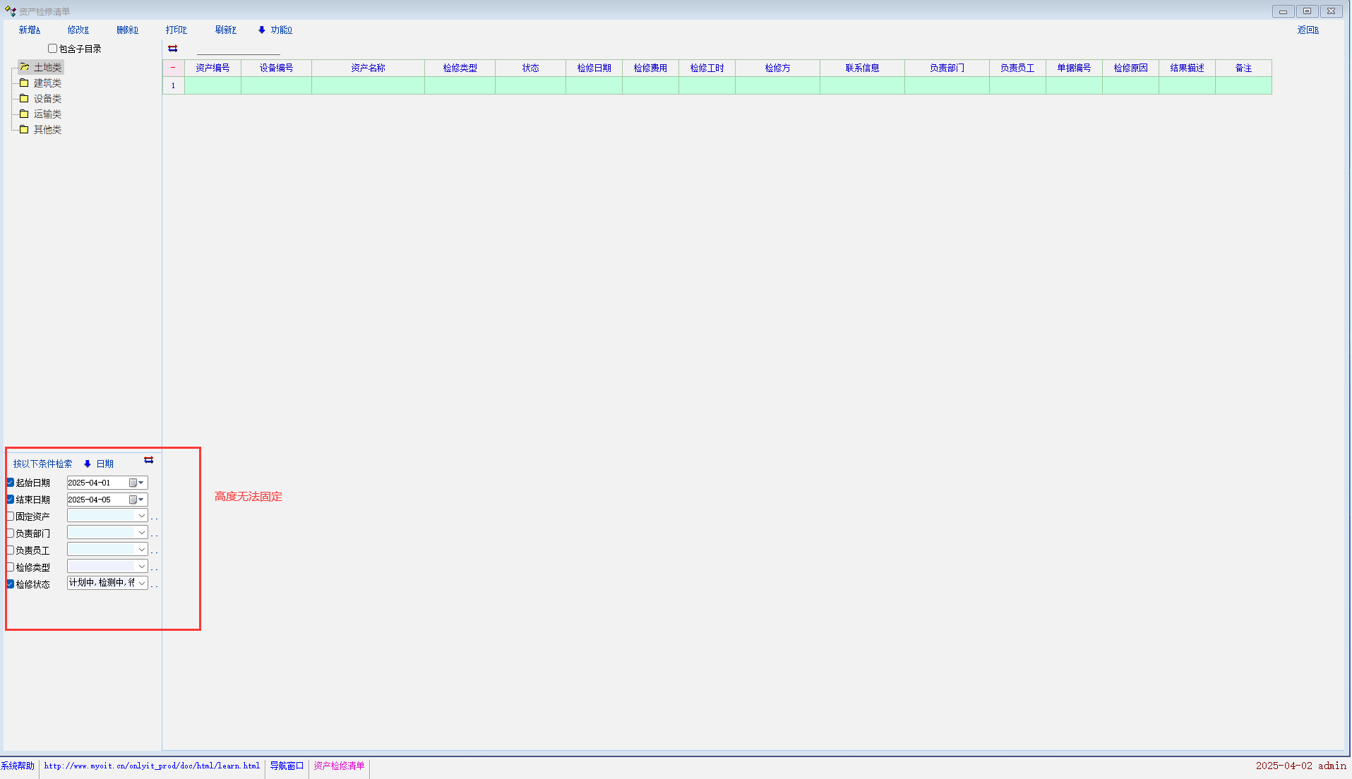 2:资产检修页面检索栏无法保存固定高度,重新登陆又回到默认状态高度