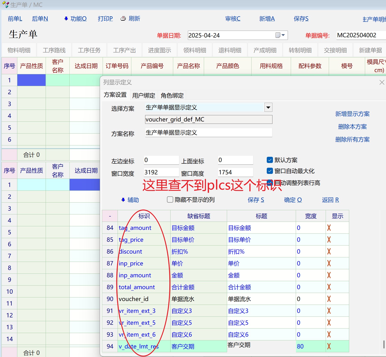 比如:在生产单中引用不到plcs这个标识(图2)