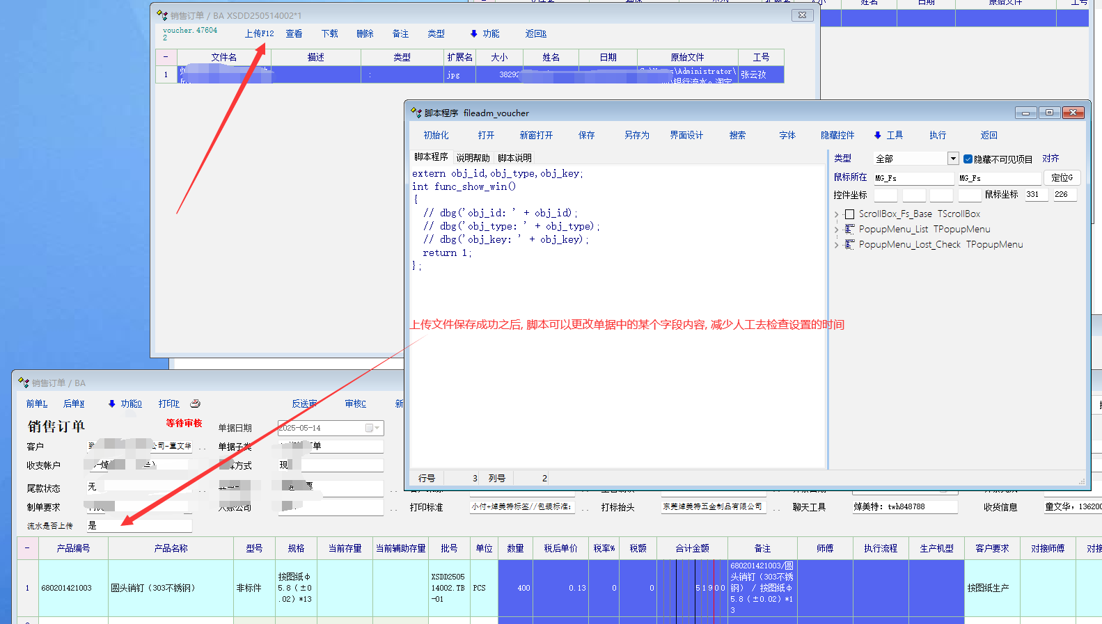 应用场景: 类似销售订单, 如果有收款, 必须上传收款流水记录. 方便财务核实. 想用相关文件中的脚本, 自动判断更改相应单据的内容. 达到自动化目的. |
