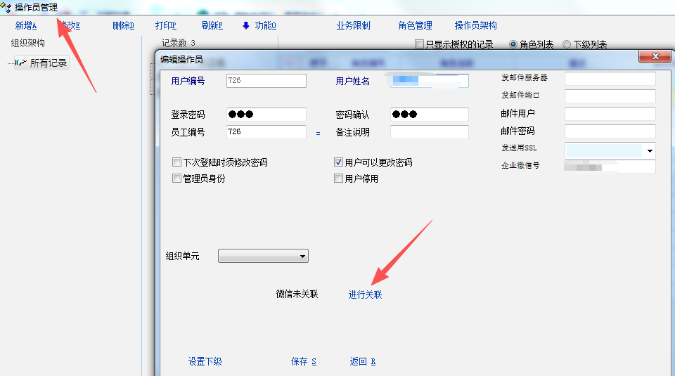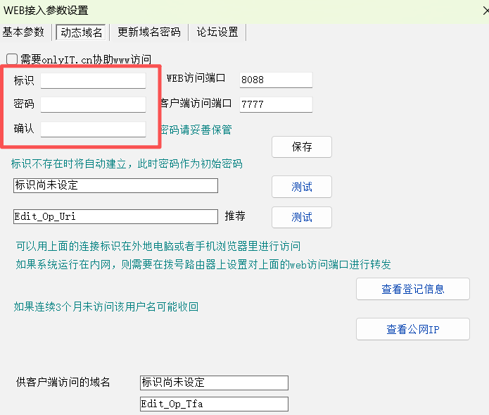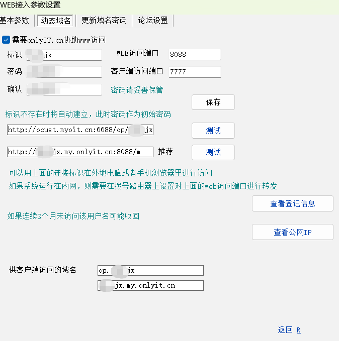 操作员编辑界面可以绑定微信,启用官方虚拟域名,web端口做端口映射