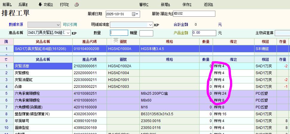 另外請問原本組成中備註有資料(紅圈內容),要如何繼續保留. 只單移除自動增加的那些呢~