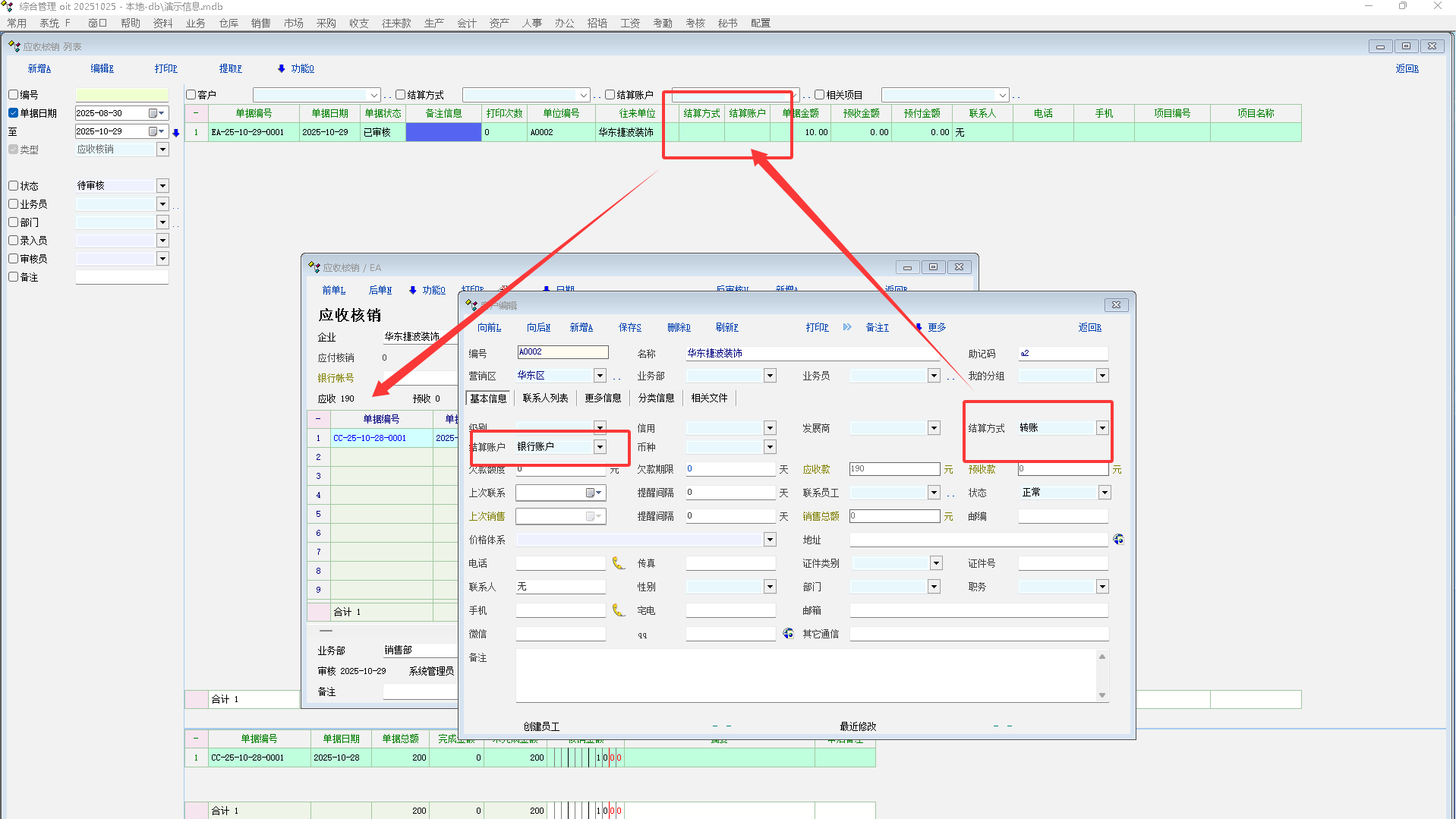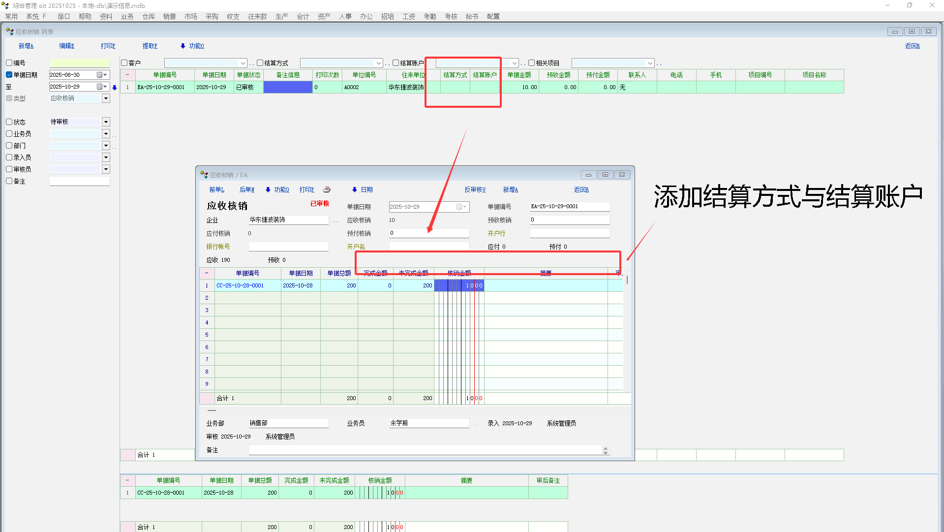 希望在应收/付,应收/付核销,预收收/付中添加结算账户,结算方式