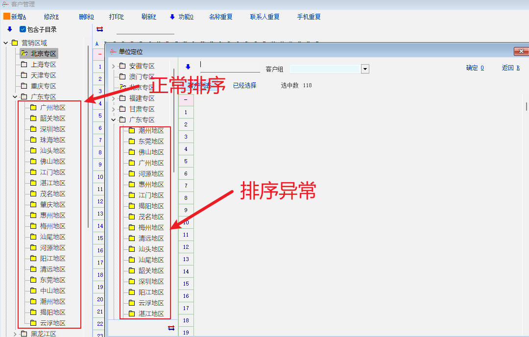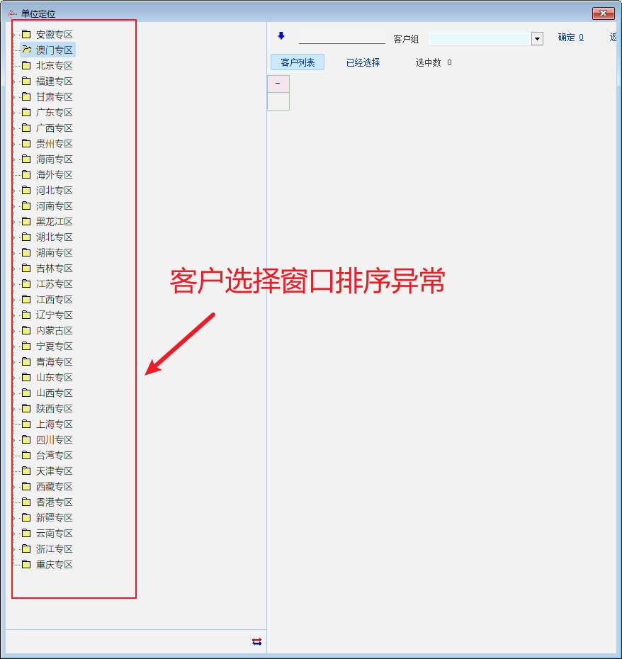 讨论_客户选择窗口 的营销区域排序异常_产供销