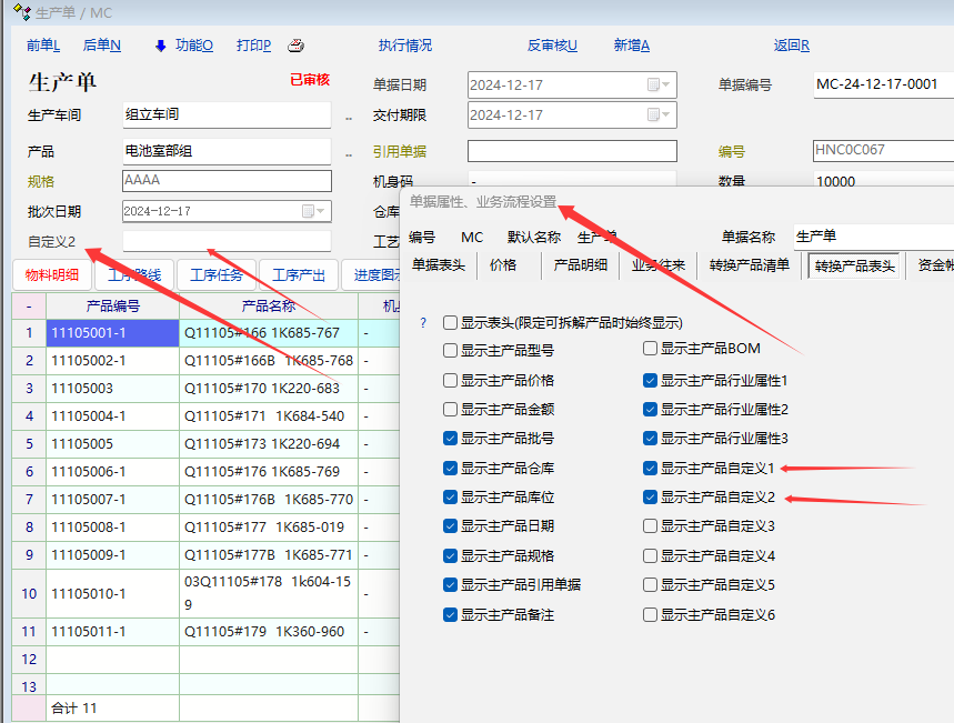 原创_生产单列表里面不会显示主产品的自定义项目,这个能否显示出来_产供销
