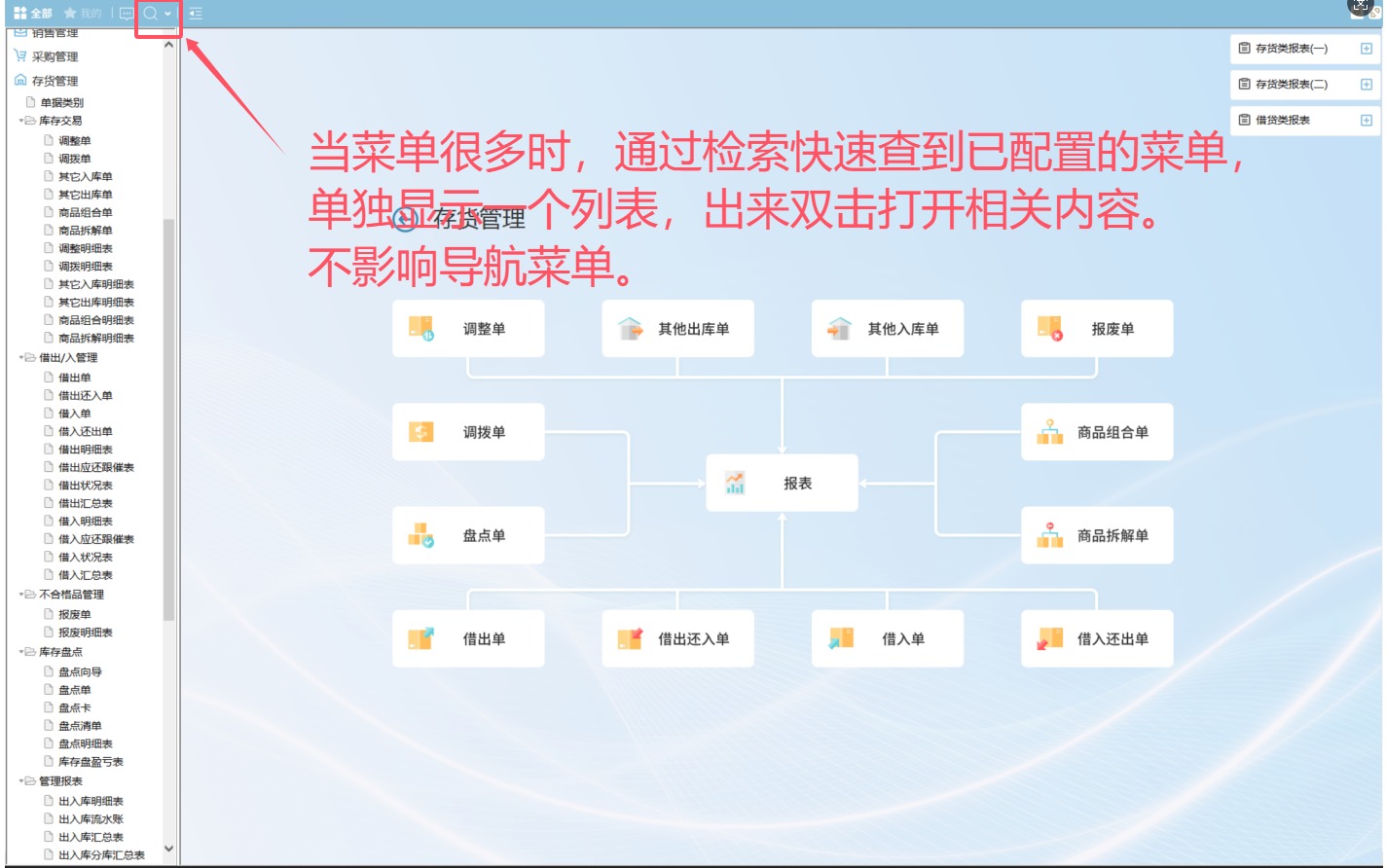 4. 检索菜单名,快捷打开相关功能。