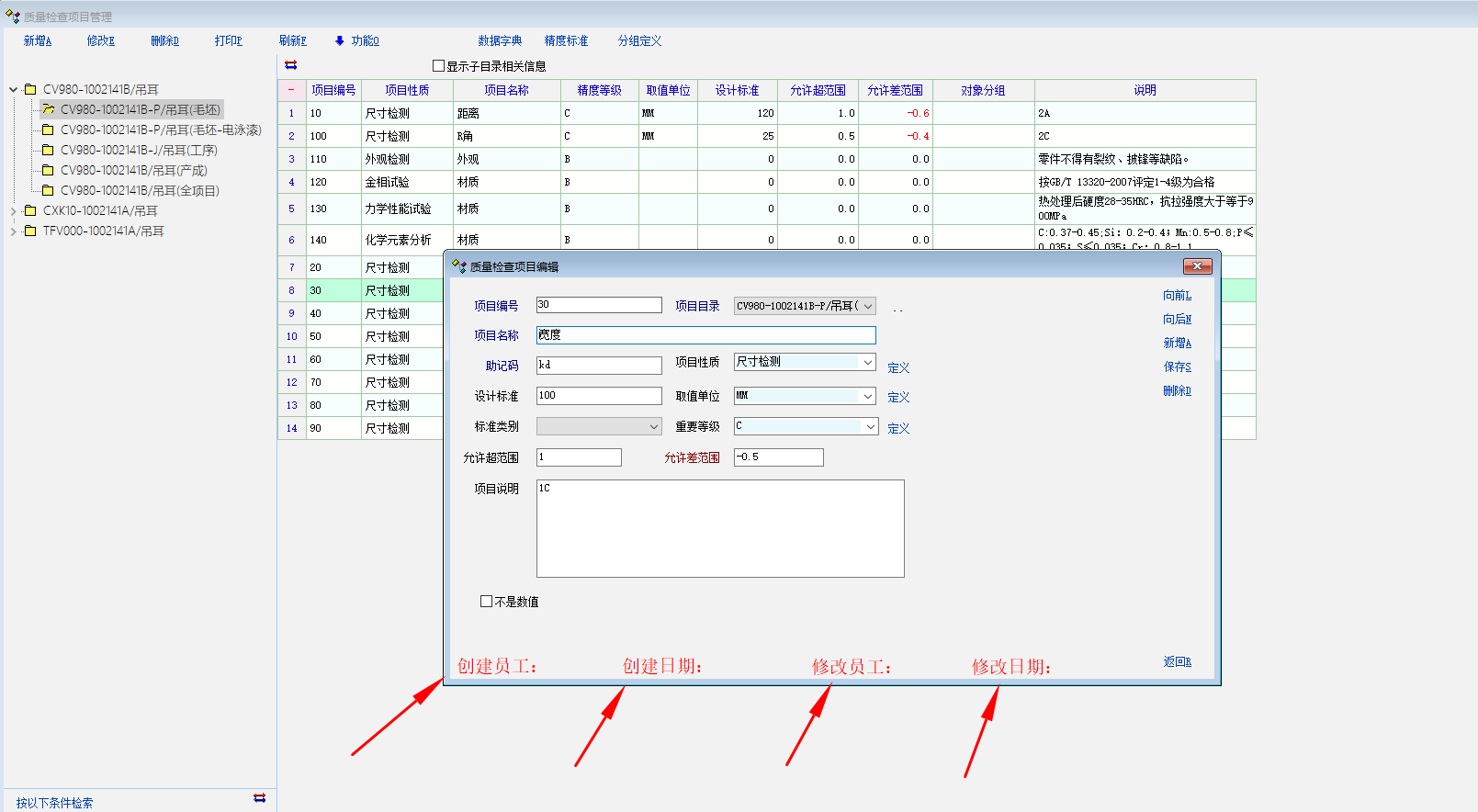 求助_质量检查项目编辑增加保存员工及修改员工及时间问题_产供销