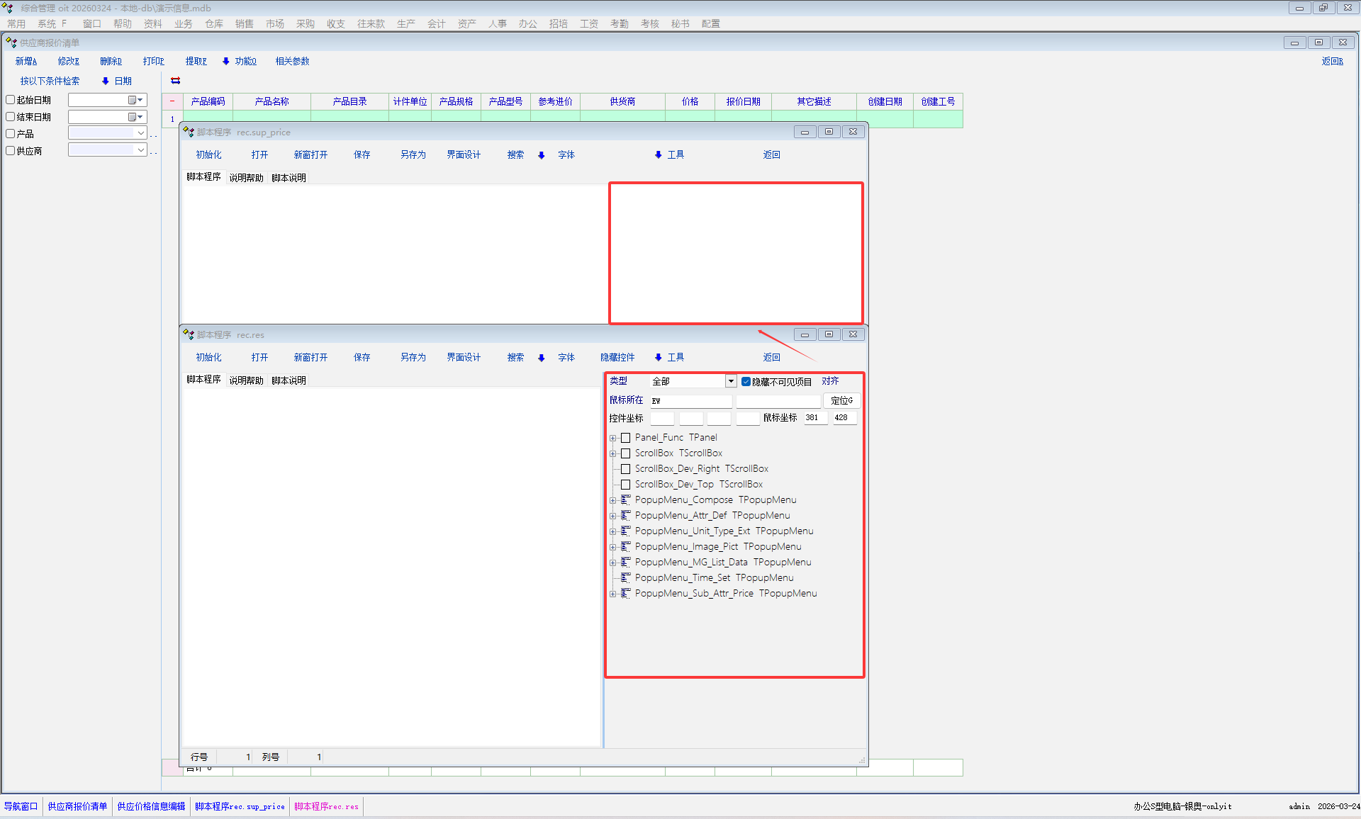 建议供应商报价信息记录编辑脚本定义如图所示增加右侧信息栏