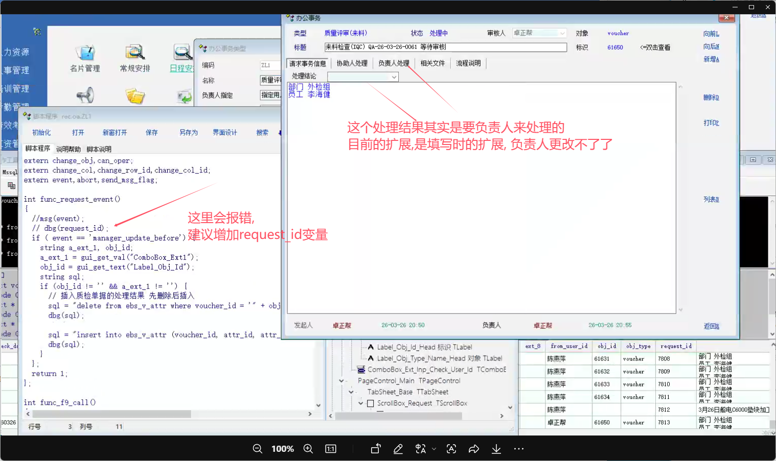 1. 办公事务类型的脚本中, 获取不到 request_id, 就是当前事务的id. 没办法用脚本去做一些操作.