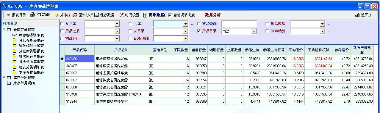 老师:你好!在导入商品信息后发现有部分商品的平均进价变成了红字、有部分金额变小了?大部分是正确的。这是怎么回事啊,讨教了。详见截图。