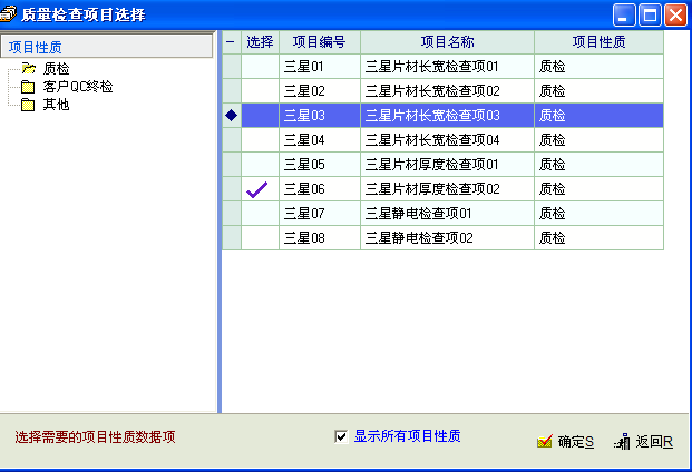二、假设我在质检项目中定义了10个检查项目,分别是产品的长、宽、厚、内尺寸1、内尺寸2等等10项目,然后生成一张质检单据,但是再明细里只能引用2-4个检查项,而且有时候引用是错误的,这里请开发人员亲自检查下,顺边说一下,里面的不良率什么不会自动计算啊,我们填了总数量和不良数,为什么不良率不会计算?