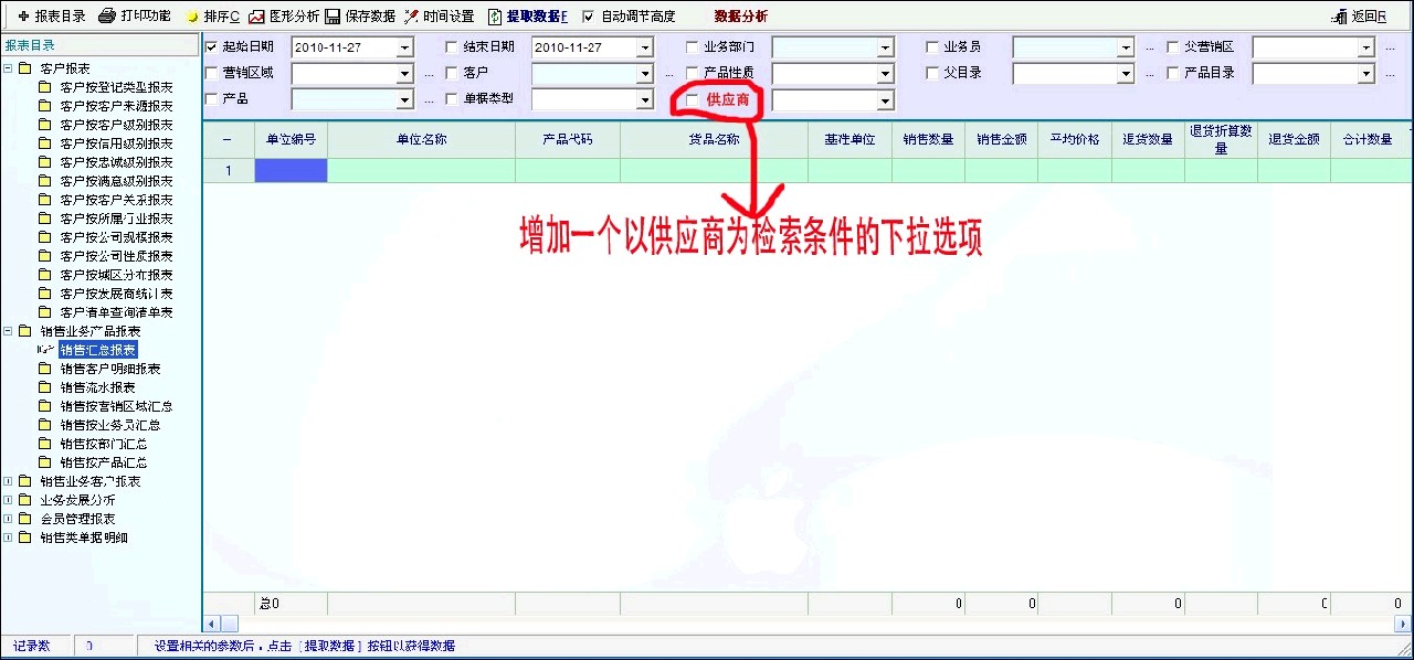 能否在所有相关报表中增加一项检索内容,上图说明。