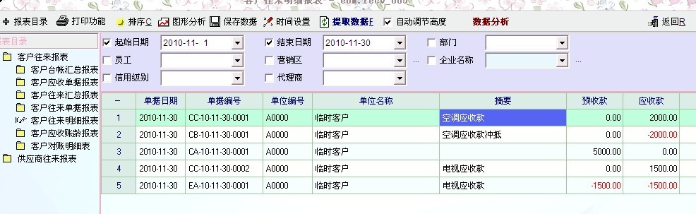 1.建议老师在应收款单、应付款单中添加【收支账户】,这样在以下报表中才能完全显示指定账户的往来情况