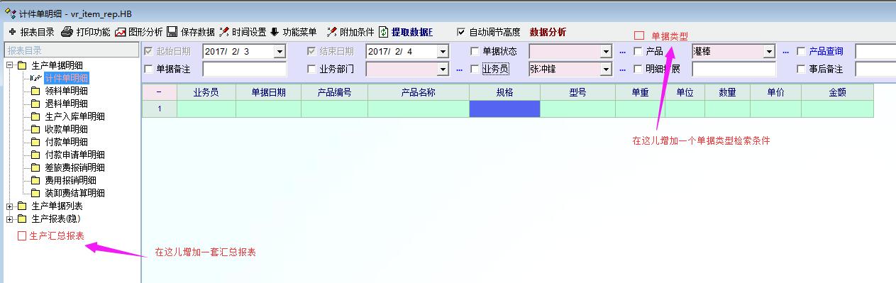 我所在的单位是铸造企业,一些班组是计件工资,人力资源系统中的计件产品不能与进销存的产品资料同步,由于品种繁多,新建比较麻烦,因此我自定义了一个生产单据,用来计算计件工资,使用的是进销存里的产品资料(增加了一个计件单价的扩展属性)。由于该单据设置不影响库存,在库存报表中无法查询,只能在生产报表中查询,目前生产报表没有汇总报表,只有明细报表,非常不便,希望增加一套像库存报表那样的汇总报表,这样查询统计起来就方便多了。