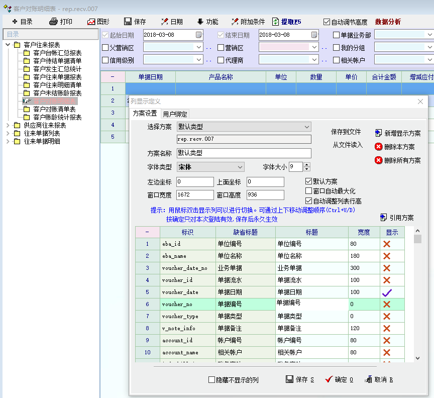 在往来款报表-客户对账明细表中怎么增加显示定义中没有的字段