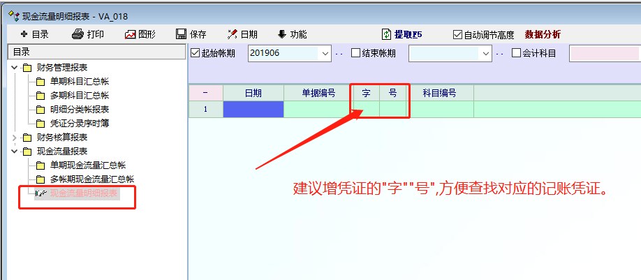 建议《现金流量明细报表》增加显示凭证的字号,方便查找对应的记账凭证。