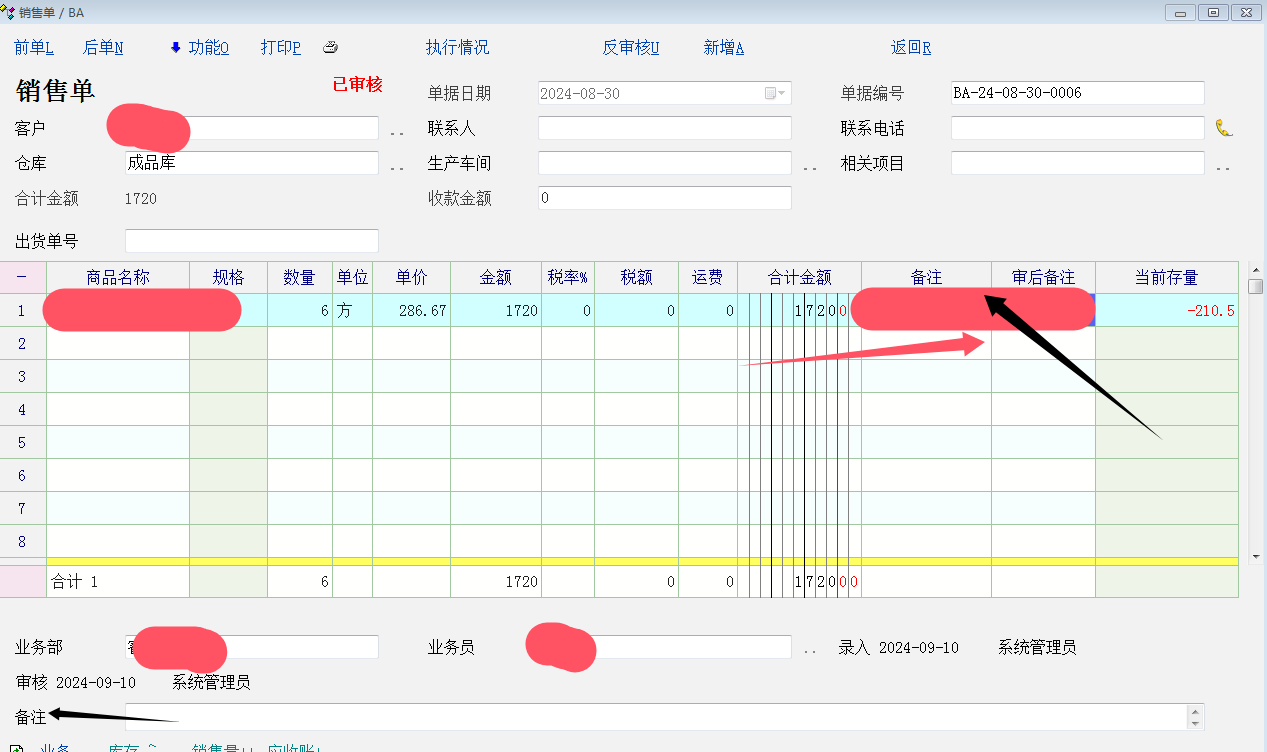 我的问题是:需要销售列表中提取销售单正表中备注中的文字信息,销售列表中只能提取销售单底部的备注。