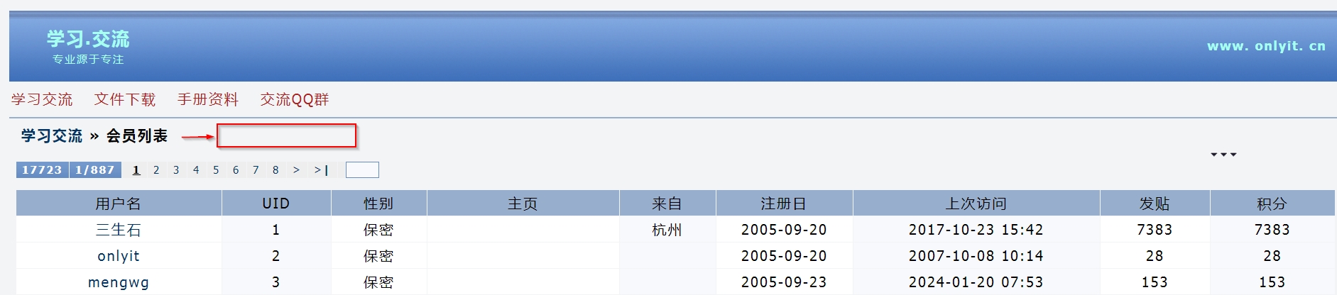 在论坛查找资料,除了搜索贴子的标题外,有时还想查查某个坛友的贴子,但成员列表没有搜索功能,只能手工一页一而翻查,效率很低。